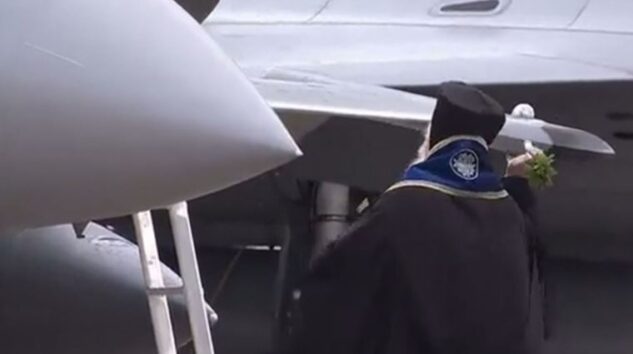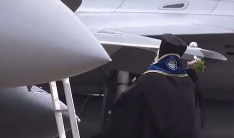 Teslim alınan uçakları, Yunanistan Kilisesi’ne bağlı rahipler kutsadı.